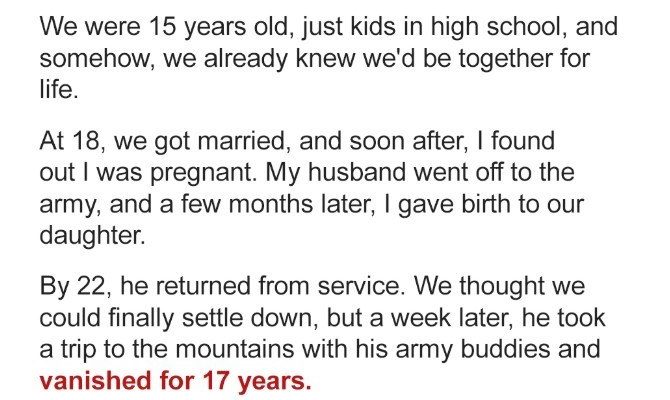 I’ll never forget that day, the way he swept me up in his arms, our daughter giggling in his lap as we sat in the backyard, feeling like our life was finally beginning. A week later, he planned a trip with his old army buddies up to the mountains. Just a short getaway, he said.