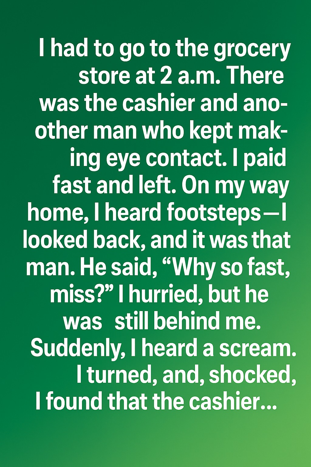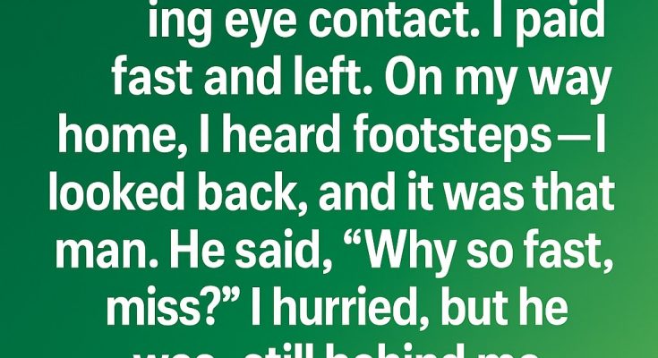 Earlier that night, the cashier had recognized him immediately and was trying to alert me subtly, but I hadn’t noticed. When I left the store so quickly, the cashier panicked, realizing I might have been walking straight into an unsafe situation. He grabbed my wallet as an excuse to run after me—just to make sure I wasn’t alone with the man.