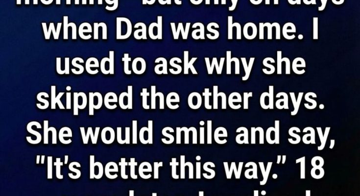 I used to wonder why she skipped it on the other mornings. Whenever I asked, she’d give a gentle smile and say, “It’s easier this way.” At the time, I accepted it as one of those vague adult answers kids don’t push back on. I didn’t think much of it. I just enjoyed the steady pull of her hands, the quiet start to the day, and the sense that life in our little house was exactly as it should be.