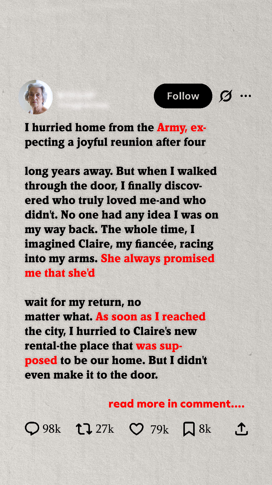 Nobody answered. So I did. “They told everyone I died. The Army fixed the mistake. My parents called your wife. Three weeks ago.”