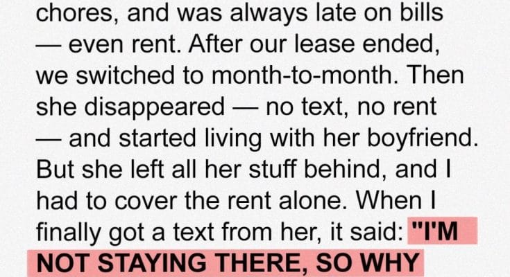 most of her stuff still scattered around the apartment — to live with her boyfriend in his mom’s basement. She ignored my texts about rent, even telling me she shouldn’t pay because she “wasn’t living there.” For two months, I paid her share, drained my savings, and got nothing but silence.Finally, I told her if she didn’t respond