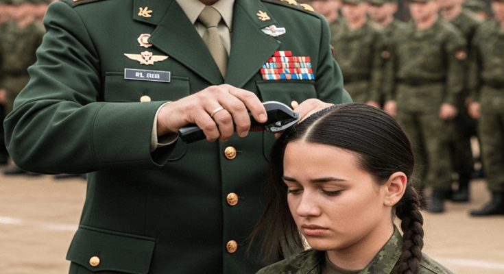 At the end of Third Platoon stood Private Alara Hayes—steady, composed, a reputation for flawless compliance. Her dark hair lay braided beneath her cap.