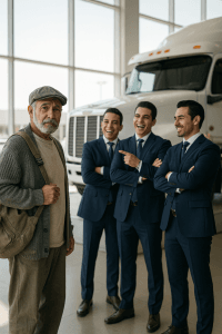 “32 trucks and you come here dressed like this, sir. With all due respect, large fleet owners arrive with a chauffeur, with assistants, with accountants. They don’t walk alone with a broken backpack.”