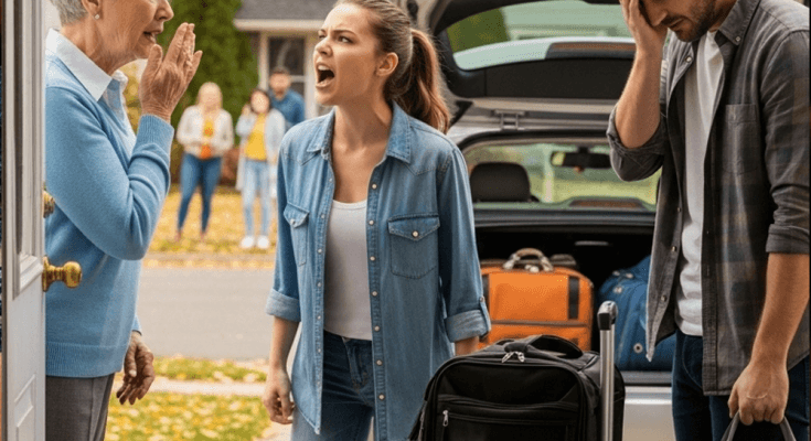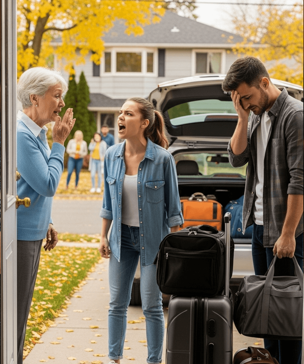 My eyes shifted to the suitcases. Three. Not overnight bags. Not a weekend trip. Their lives, packed in fabric and zippers, sitting on my porch like anchors.