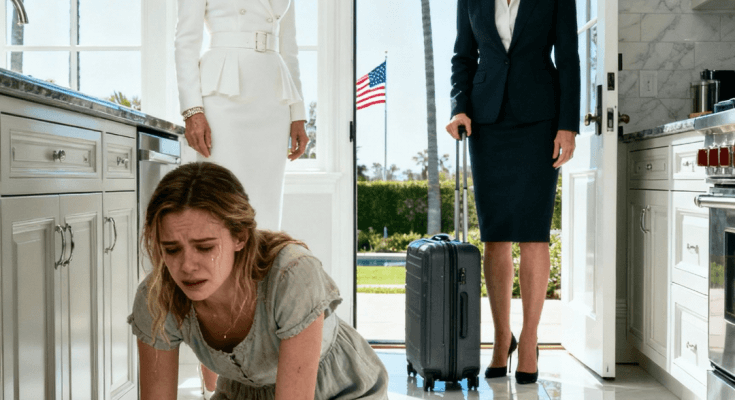 My daughter was on her knees on the cold marble floor, scrubbing like a cleaning lady from a commercial. Her hands were red and raw. She was wearing a faded cotton dress I remembered buying for her years ago, back when we still lived together. It hung loosely on her, like she had shrunk inside it.