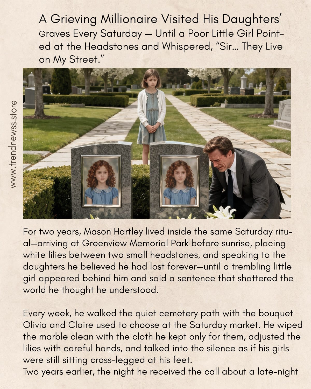 Two years later, on a quiet Saturday like any other, Michael was wiping dust from the tombstones when he heard a timid voice behind him.