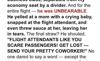 On a long-haul flight from Oslo to New York, Emily watched a business class man berate a young mother over her crying baby, then hurl food at a flight attendant, …